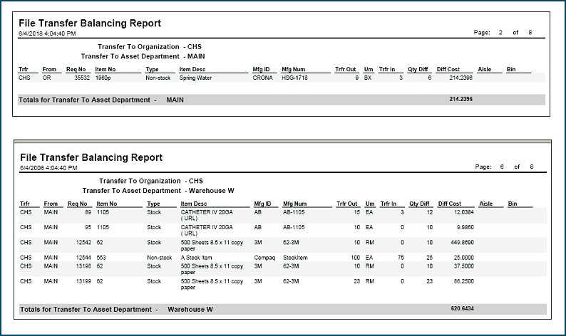 Transfers can create a purchase order automatically when the item in the supplying asset location is a non-stock item. For example, items in asset location Clinics for organization 001 are stock and supplied to 001/Clinics from asset location Main in organization 001. In 001/Main, the items are non-stock. So, when the transfer requisition is created/approved, a PO for 001/Main is created for the non-stock items.