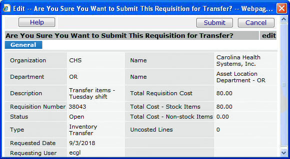 Figure 12 - Submitting an Inventory Transfer Requisition for Approval