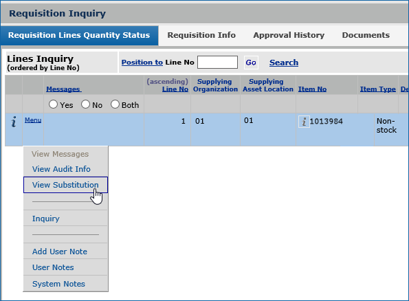 When a substitution is performed and a requisition is updated, the Substitution field is updated to Yes.