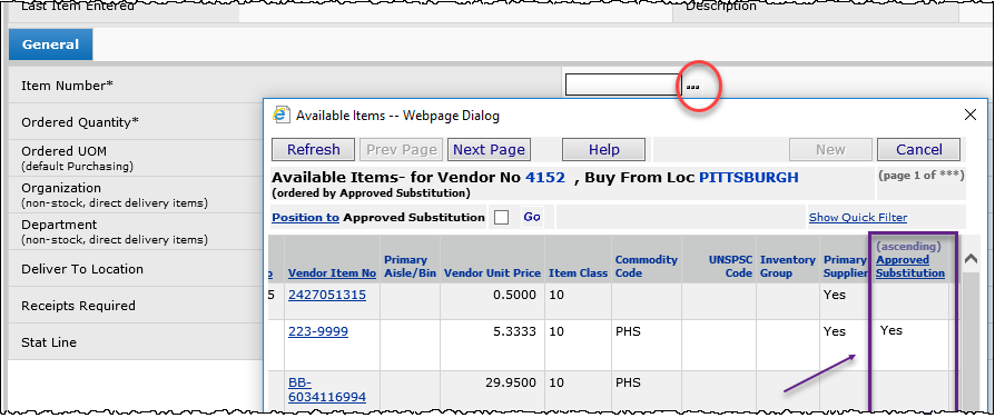 - For an approved item substitution on an EDI 850 PO, you can see the original item and the substitute on the requisition line.