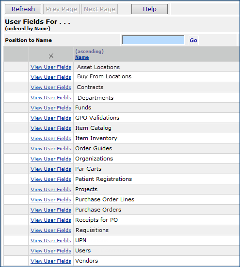 a list page, (i.e. departments, item inventory, requisitions) locate the