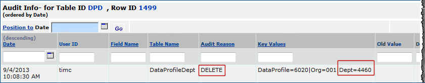 - When a Delete (D) record has an organization and department entered, then the department for that organization will be deleted from that Data Profile.