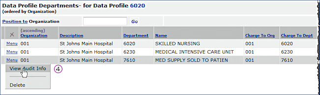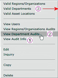 From the data profile, click Menu > View Regions/Organizations Audits or View Department Audits (Figure 55A,