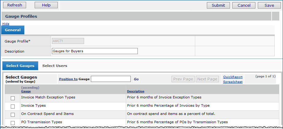 A user's assigned report profile makes the appropriate reports accessible to the user. You will want to restrict users from creating and running certain types of reports, and allow them to create and run other reports. For example, check printing runs in the system as a report. Most likely, you will want to authorize only a few users to print checks. Similarly, only a few users in each department will need the Department Expense Report.
