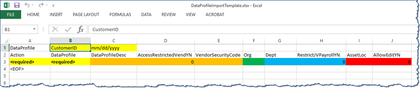 An Excel template is required for the data and fields that you will upload and import into ERP.
