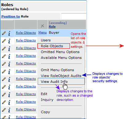 - Alternately, on the menu for the role (Figure 57A), click View RoleObject Audits.