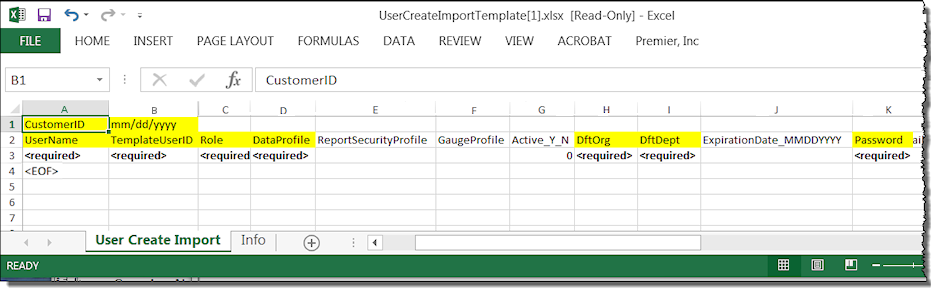 To create user records, an Excel template is available for entering fields that you will upload and import into new User Profiles.