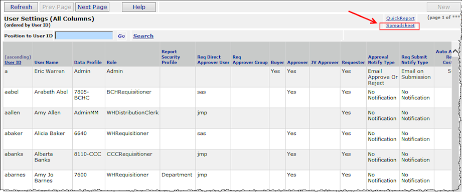 For maintenance purposes, administrators can export all user settings in the ERP application, make changes and import that data back into the ERP application to update users' profiles.