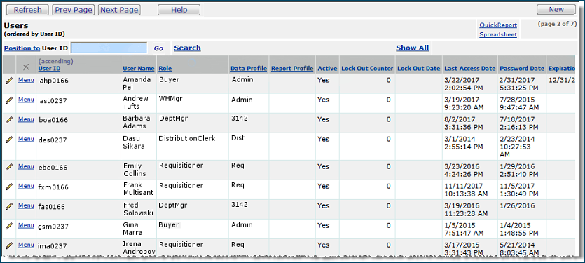 - Locate a data profile that is close to the type of profile that is appropriate for the vendor's users. (You can edit the profile once it is copied.)
