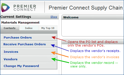 - You should see a menu similar to that in Figure 1. If you wish, you can open the purchase orders list and verify that only the vendor's POs appear.