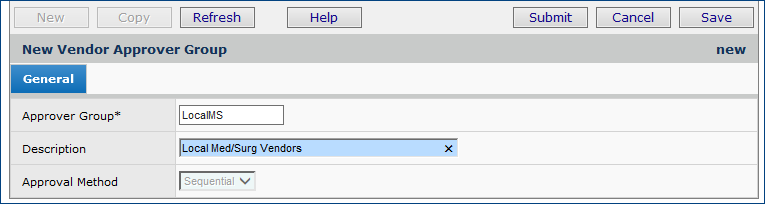 When you create a new vendor, the Approval tab contains fields that default to approvers or approver groups assigned on your User Profile.