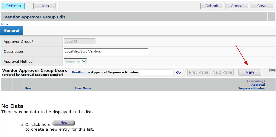 The Vendor Approver Group Edit panel appears (Figure 4). When you add users to the group, they are listed on the lower part of the panel.