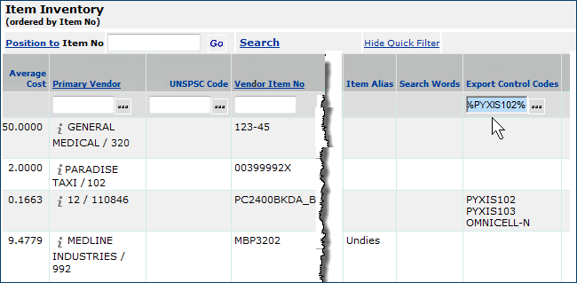 - If you wish to search the list for particular items, click Search and enter your search values on the Search panel. Notice that you can search for an Item Description by entering text in the Item Desc field.
