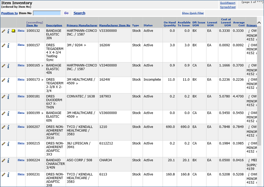 - A small arrow next to an Item No takes you to a tabbed panel. From