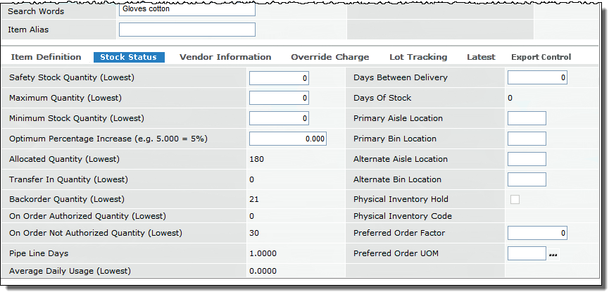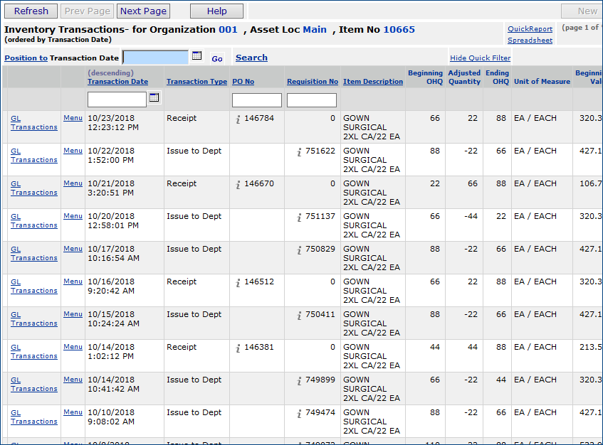 Inventory is a list of items available for requisition from an asset location. Each item has a detailed