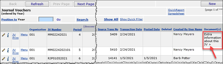 A list of posted journal vouchers are displayed (Figure 4) — in this