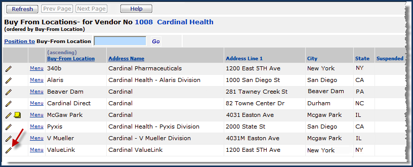 Figure 2 - Vendor Buy-From Location List