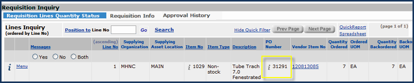Figure 7 - Requisition Generated from Import