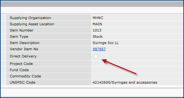 Figure 14 - Direct Delivery Field on the Requisition Not Checked