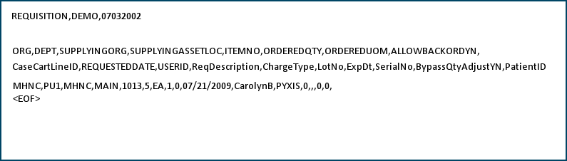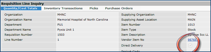 Figure 6 is a sample requisition import from Pyxis for the item in a direct-delivery environment.