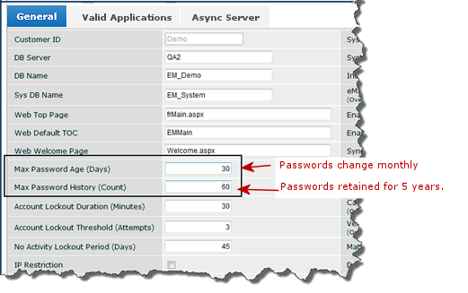 Figure 3 is an example of a customer record for a site. A user at the site who changes her password today must change it again in about a month (30 days), and cannot reuse the same password for five years.