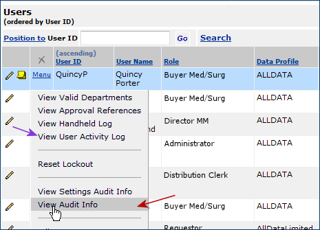 - Work in Administration > Administration > Users > Menu > View User Activity Log.