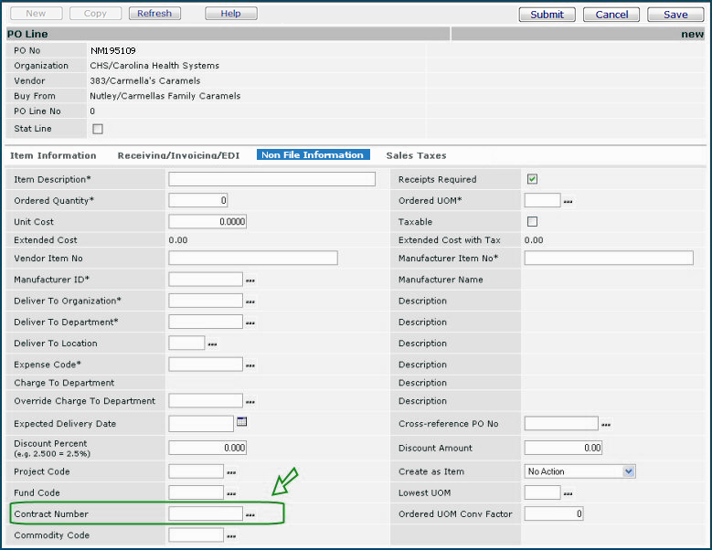 Figure 18 - Contract Field on Purchase Order Non-File Item Line Panel