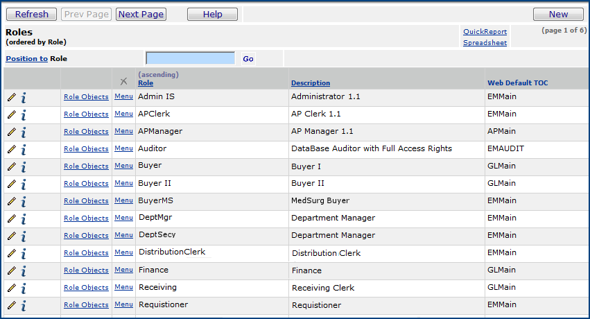 You may also wish to customize the table of contents for the role so that users in that role will have access only to specific system features.