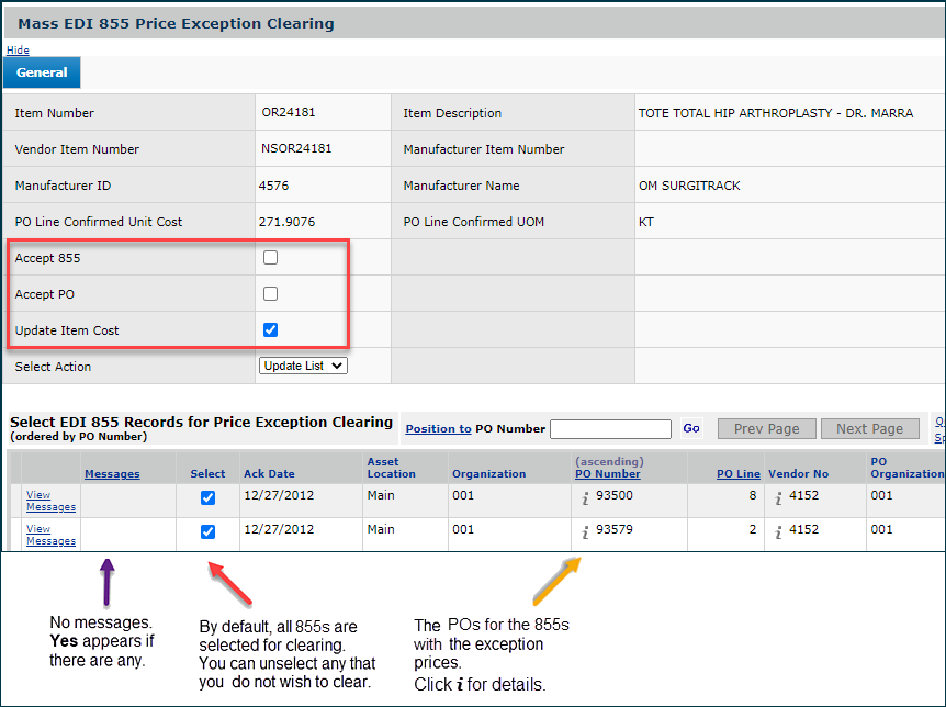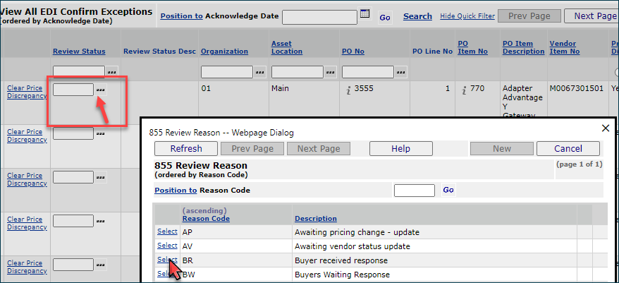Note: EDI 855 documents older that 30 days (from the Acknowledge Date) are purged.