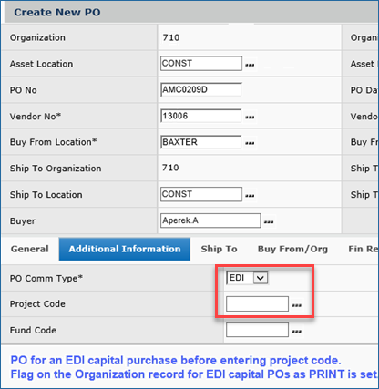 Purchase orders that use this method to avoid EDI transmission need to have an associated project code.