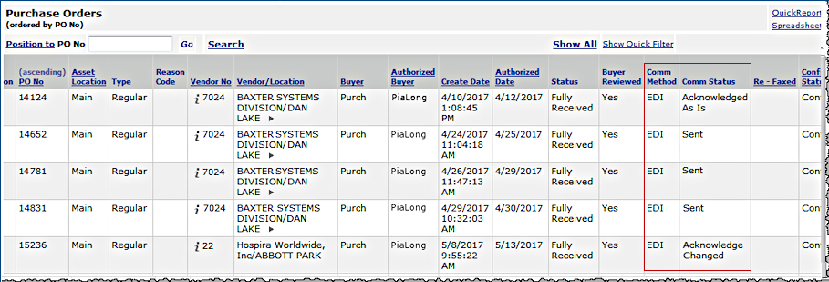 Comm Method - For EDI purchase orders, the value in this field is EDI.
