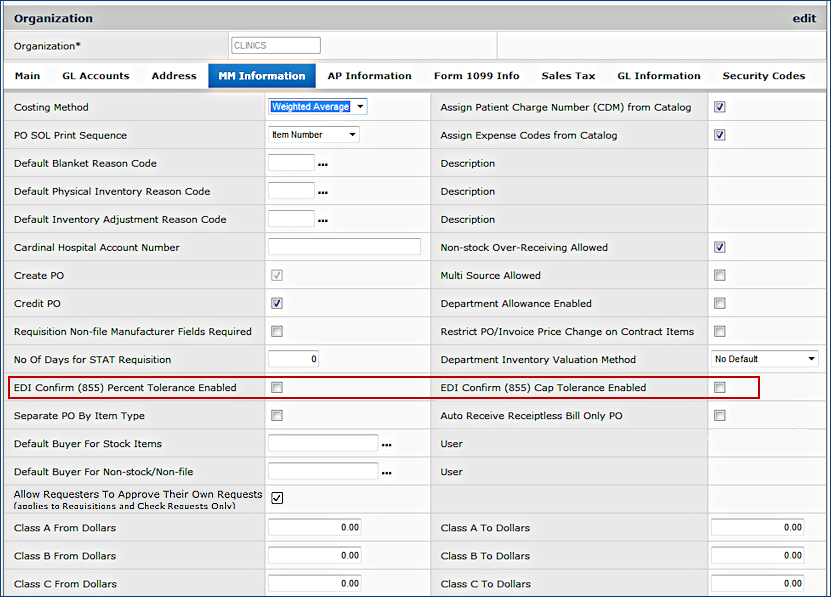 On occasion, you will have EDI 810 invoices containing lines that have zero-dollar amounts, with no matching lines in the associated purchase order(s). This situation can occur with invoices that include “information only” lines with no amounts (examples are bill-only or capitated pricing invoices, among others). The system provides a feature that allows each organization to handle these types of invoice without working them manually. Each organization allow (or disallow) EDI invoices with zero-dollar lines to be automatically matched successfully.