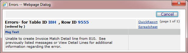 When an 810 message is received, while the invoice is building, the system tries to match and reconcile the invoice with a purchase order (line by line). During the match process, if either of these situations exists...