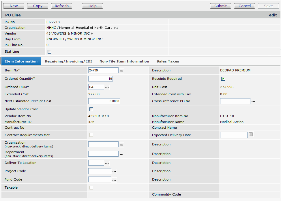 For certain vendors, your site may automatically generate EDI purchase orders for stock item replenishment and non-stock item requests. You can also create EDI purchase orders manually. Creating an EDI purchase order is similar to creating any other purchase order, with only a few differences.