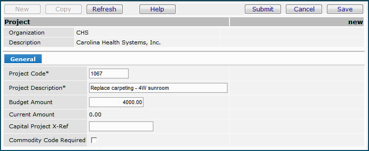 Follow the standard process to create a blanket (bill-only, regular, or standing) requisition. (This example uses a blanket requisition.)
