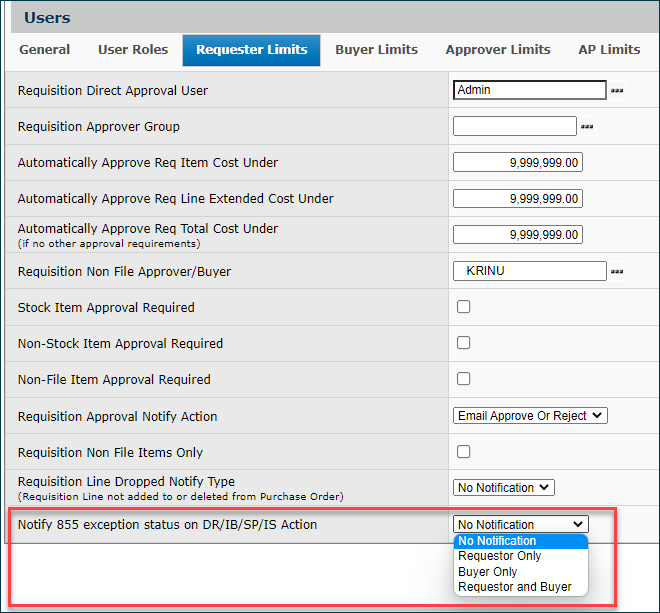 Note: You can also enter EDI 810 invoice approvers on the PO itself, instead of on the requisition. If approvers were entered only on the PO, they will be back-copied to any associated requisition, and copied to the invoice.
