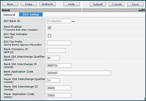 Note: Do not enter bank information for EDI 820 until the Help Desk has set up the bank. EDI 820 will not work.