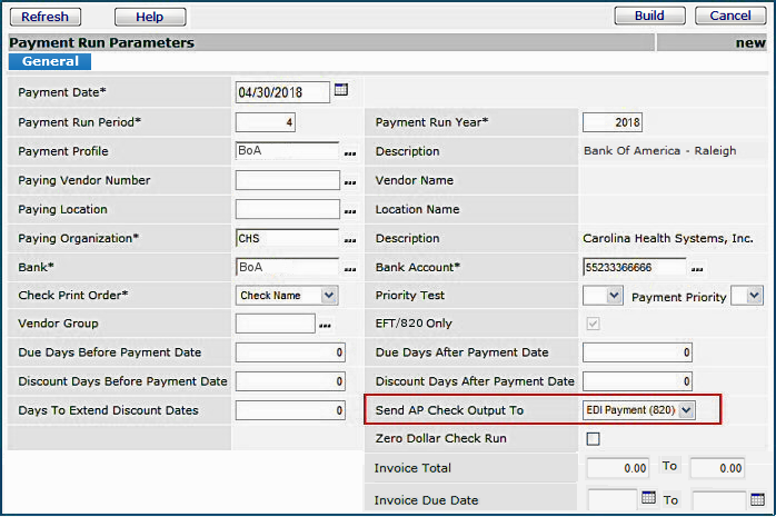 A payment run is built (Figure 6). The invoices selected for the payment run are only for EDI 820 vendors.