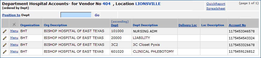 Figure 24 - Department Accounts for an EDI Buy-From Location
