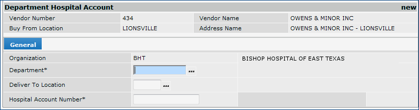 - Enter the Hospital Account Number associated with the vendor buy-from