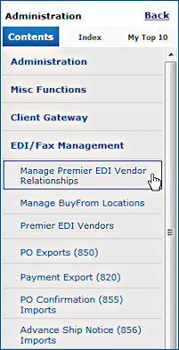 - From the EDI Administration Contents, select EDI/Fax Management >