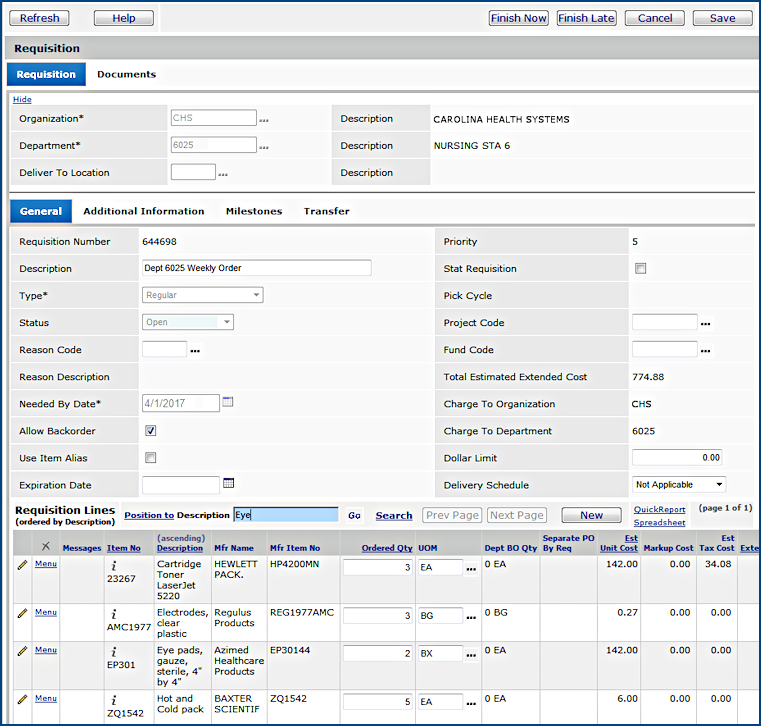 Note: You can also edit a requisition by clicking Menu > Edit next to the requisition on the Requisition List.