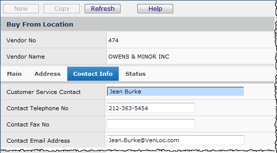 Figure 1 - Vendor Buy-From Location Record Main Tab