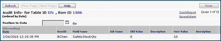 The field Safety Stock Quantity on an item record is an audited field. The system keeps a record of changes to the Safety Stock Quantity field. You can view these changes.