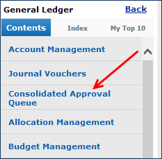From the Materials Management, Accounts Payable, or General Ledger main contents, select Consolidated Approval Queue (Figure 18).
