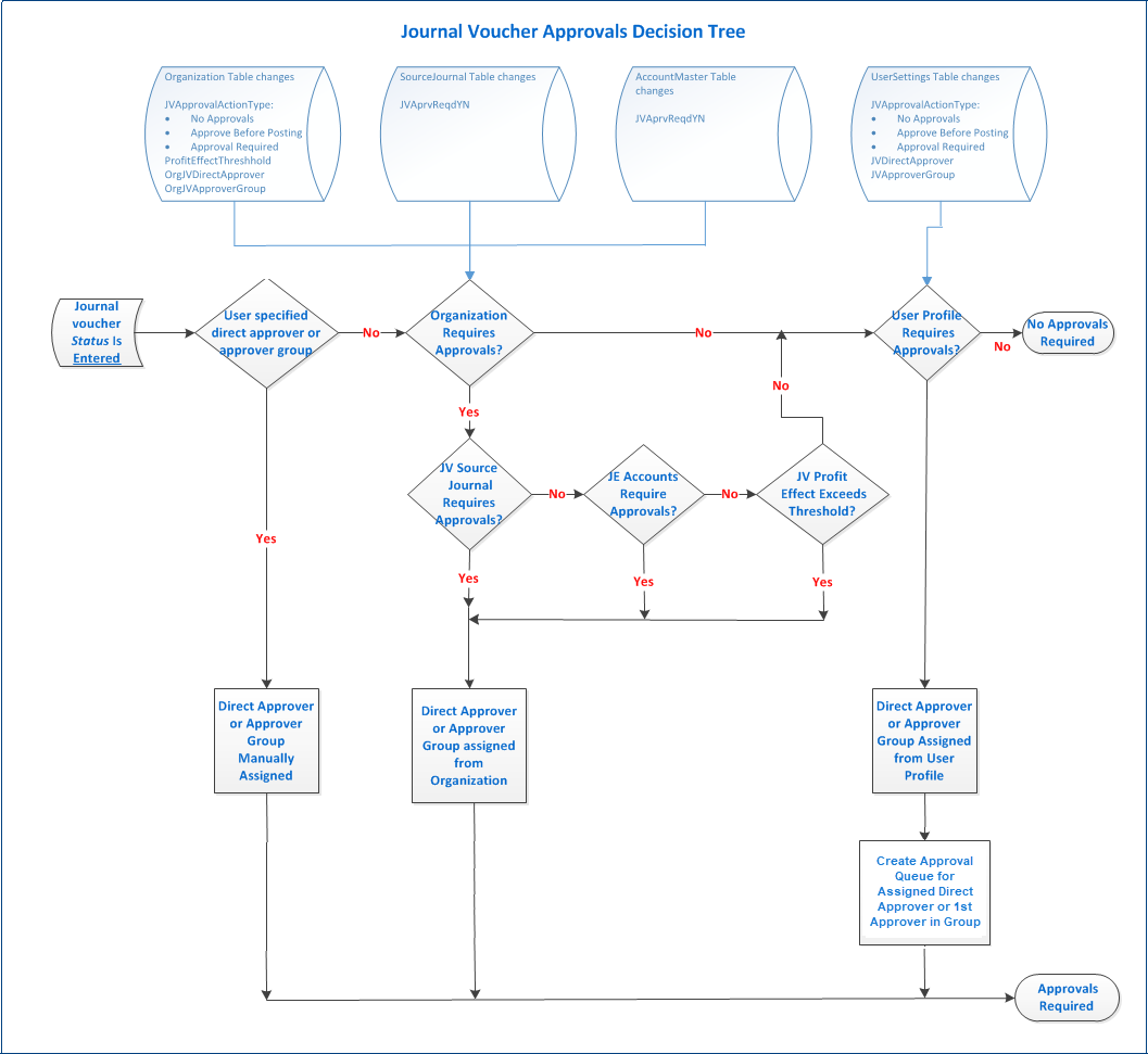 Below are the decision points used by the system to determine if approval is needed, and how to route a journal voucher for approval. Figure 4 is a flow diagram.