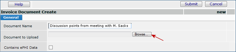1. Complete the fields on the panel and click Submit. Below is a discussion of special fields. Click Help for detailed information on fields.