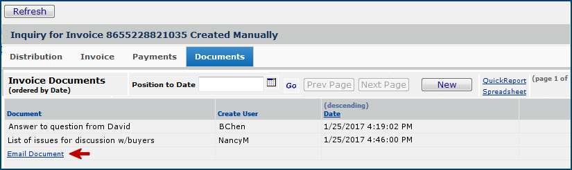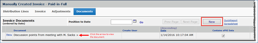 2. Use the Position To filter to locate the invoice that you are interested in. The system shows you the row for the invoice header on the Invoices list.