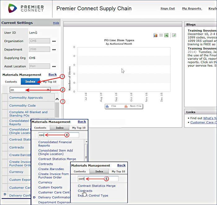 When the user types the first t in Contracts, the system narrows the search down further to include panels that contain the word "Contract."