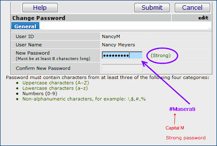 In Figure 2, the user has capitalized "M." This password is strong, and the system will accept it. The user could also have entered: "#8Maserati," which would be even stronger.